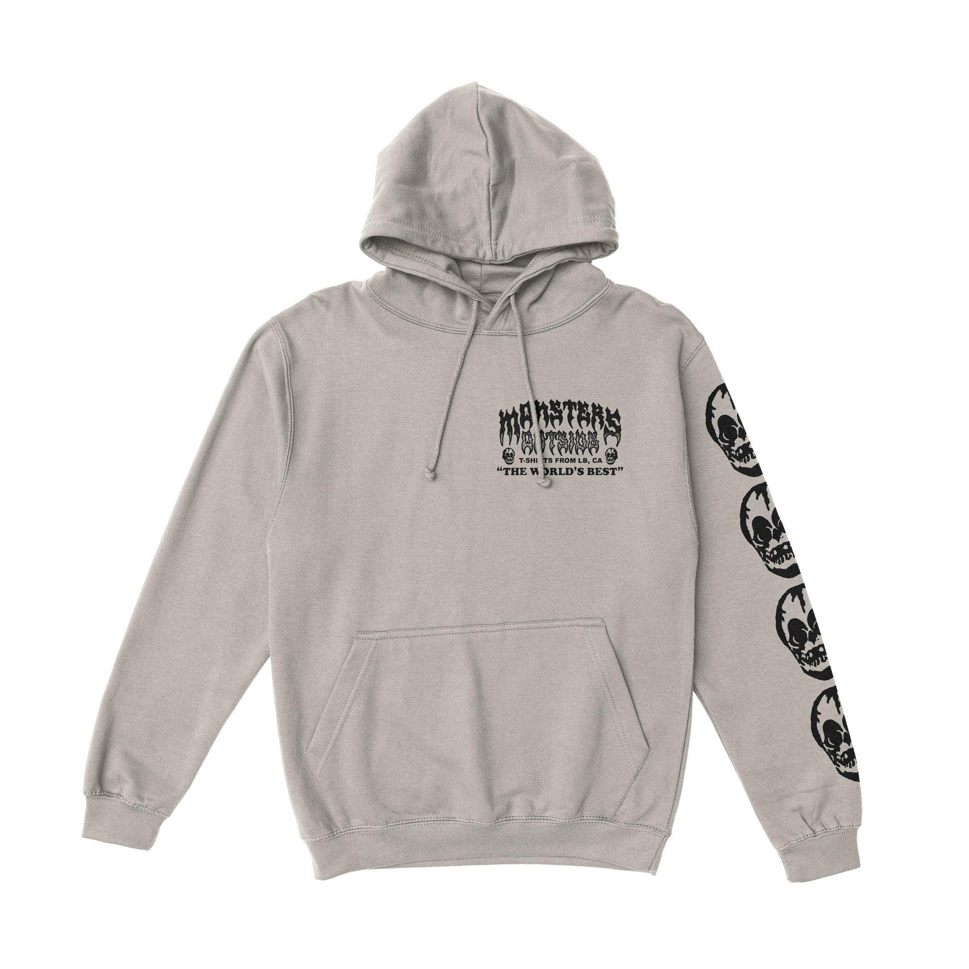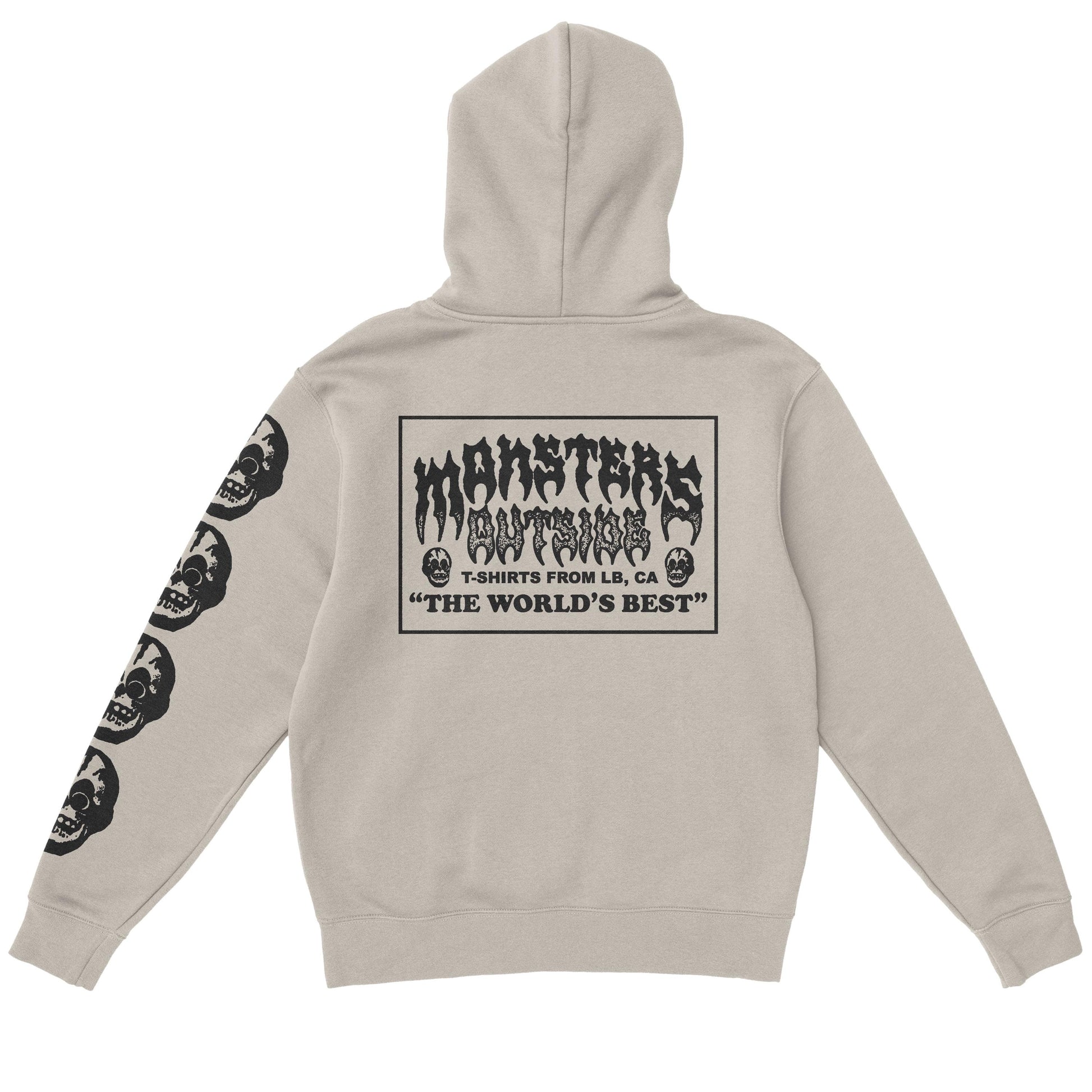 Black print on a cement color IND4000 heavyweight cotton blend hoodie.