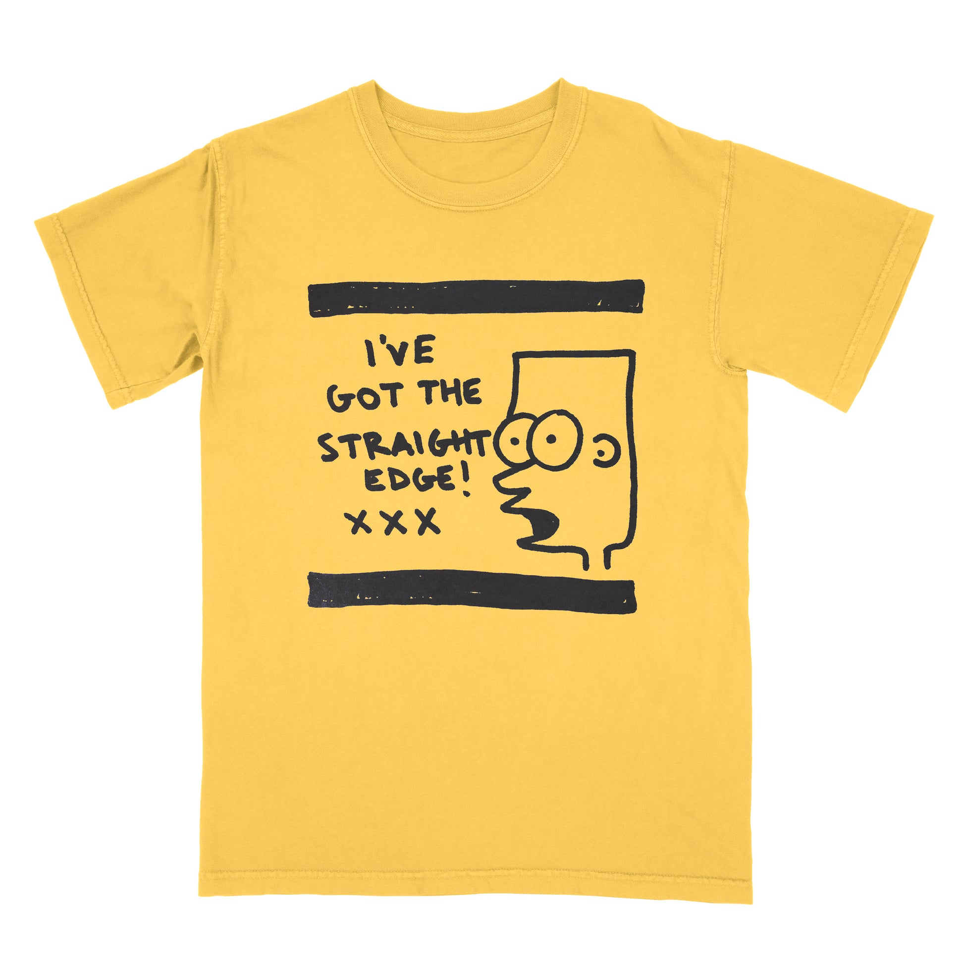 Black print on a citrus comfort colors cotton tee.