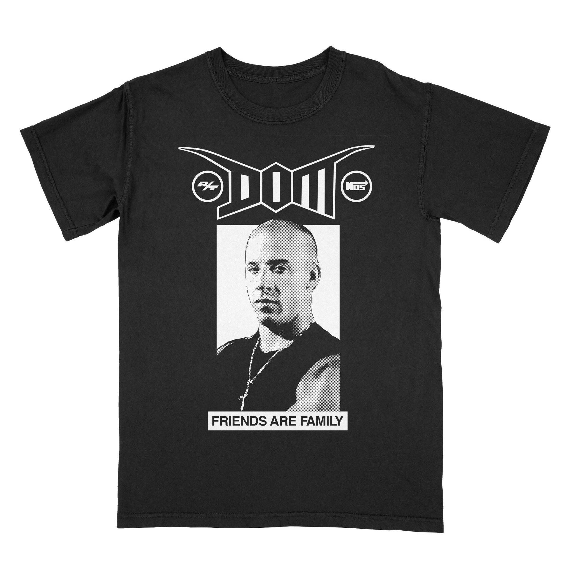 White print on a black cotton tee.
