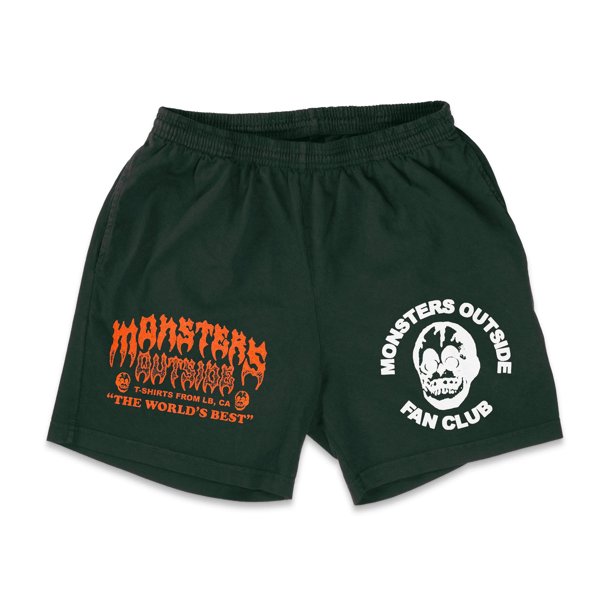 Orange and white print on ivy Los Angeles Apparel Heavy Gym Short. Sits above knee, can be worn at waist or pulled up for high waisted fit.