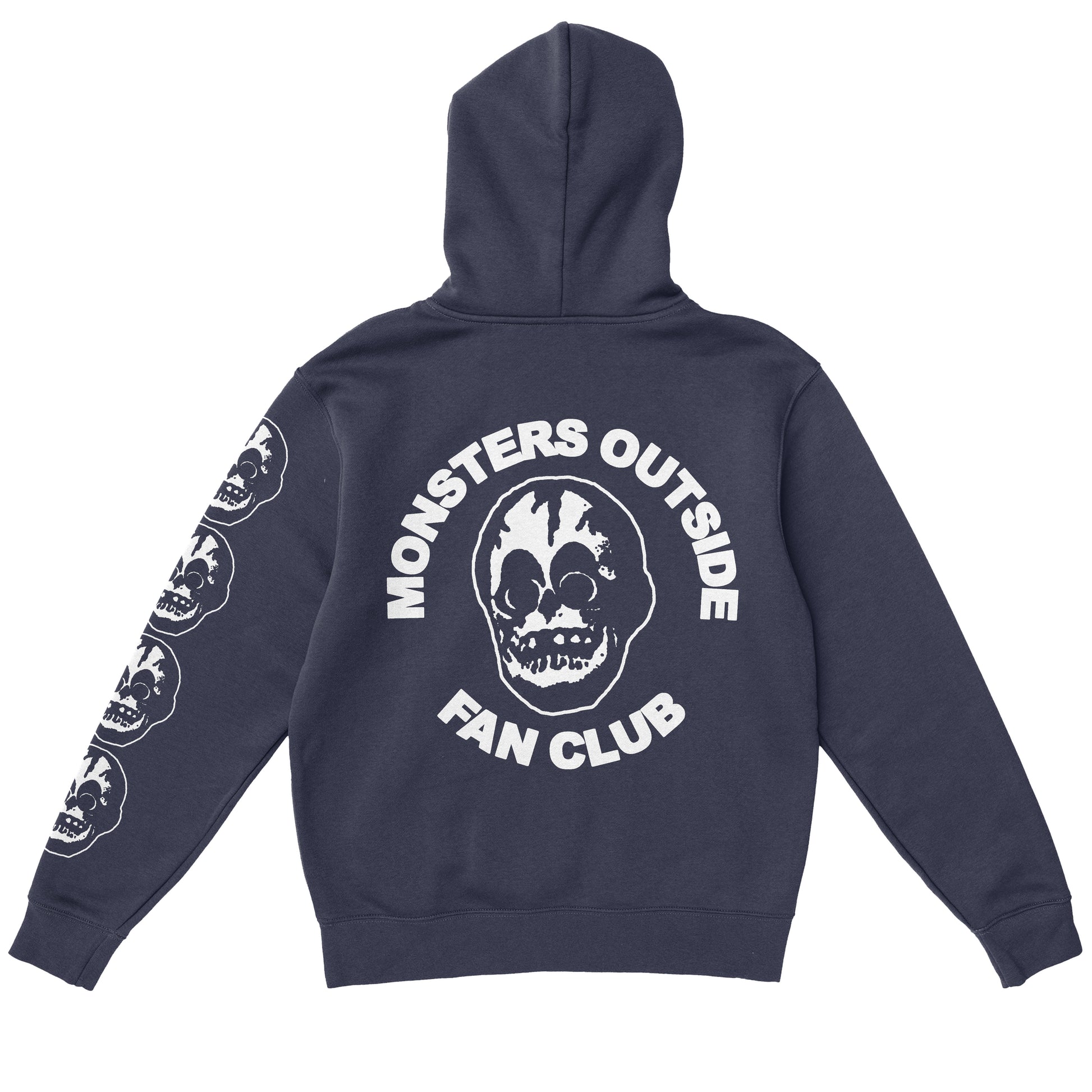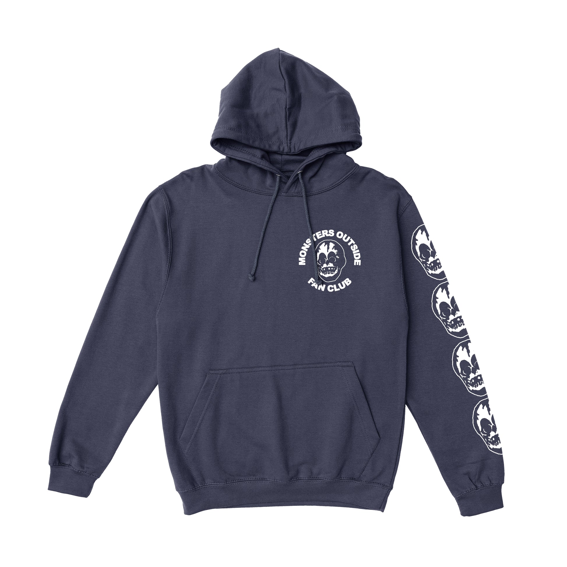 White print on a slate blue color IND4000 heavyweight cotton blend hoodie.