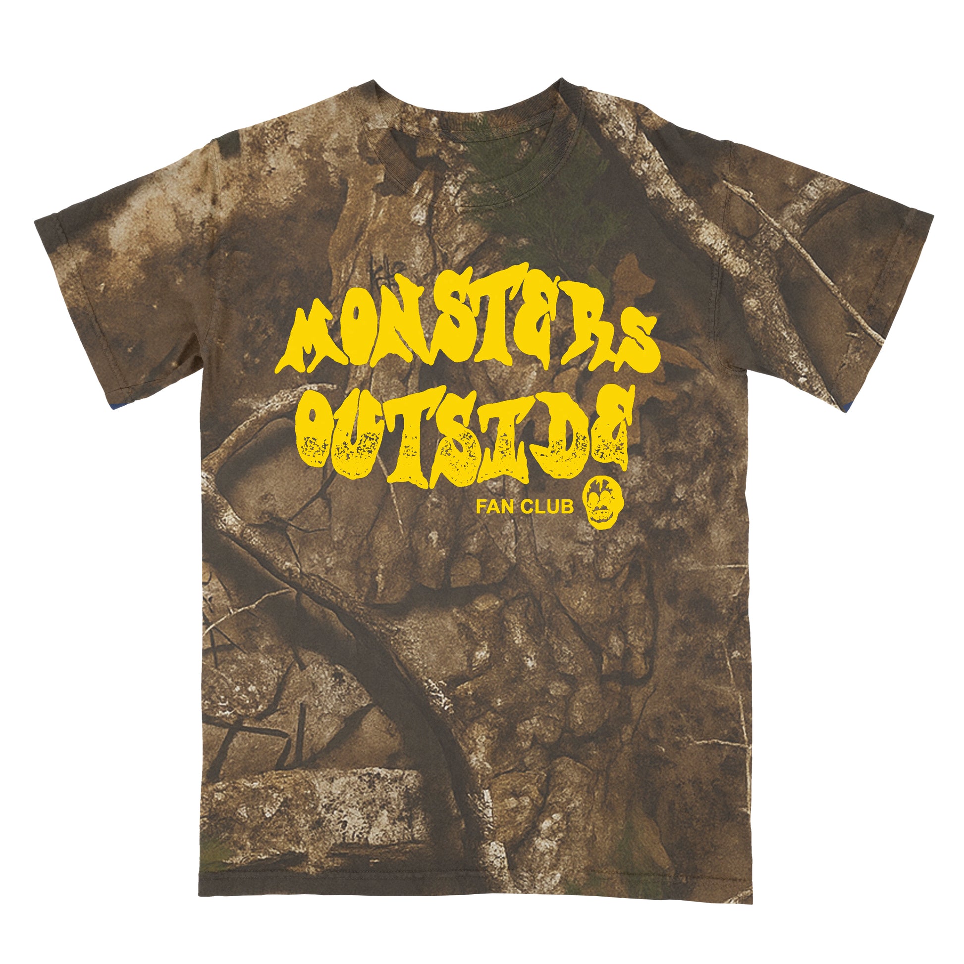 Golden yellow print on a real tree code five cotton tee.