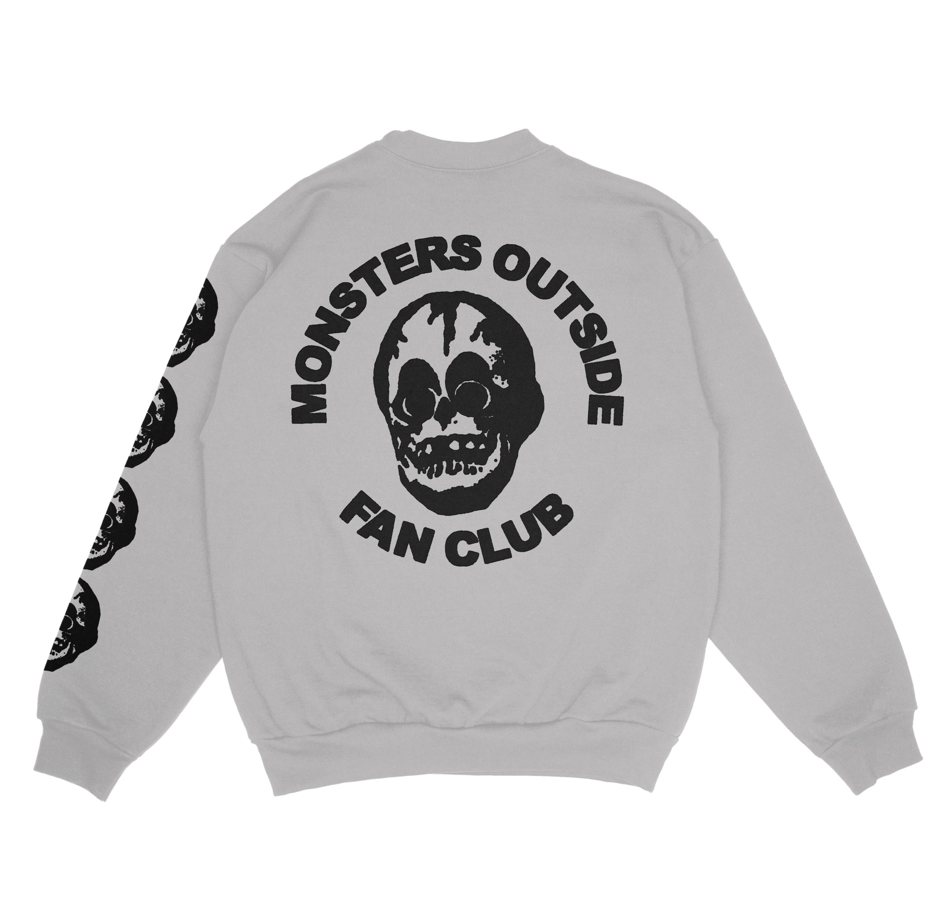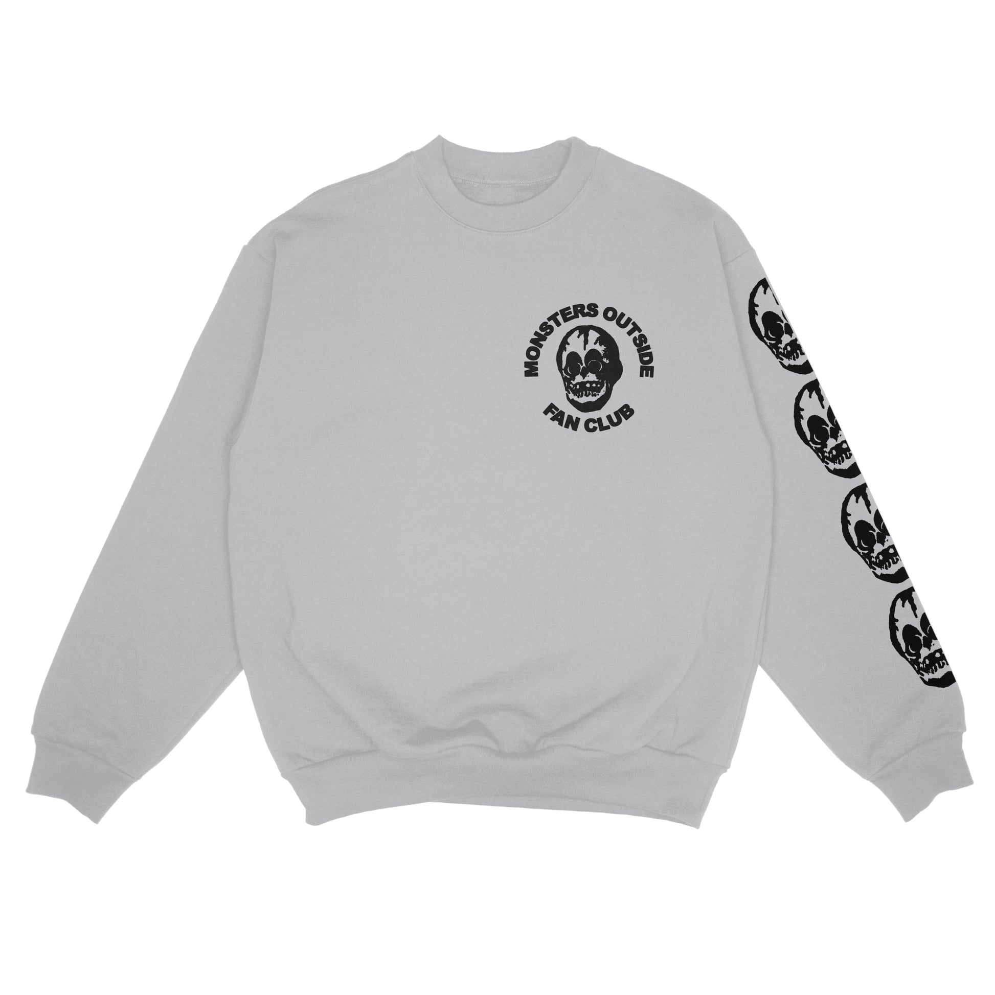 Black print on a sport grey Gildan heavy cotton blend crewneck.