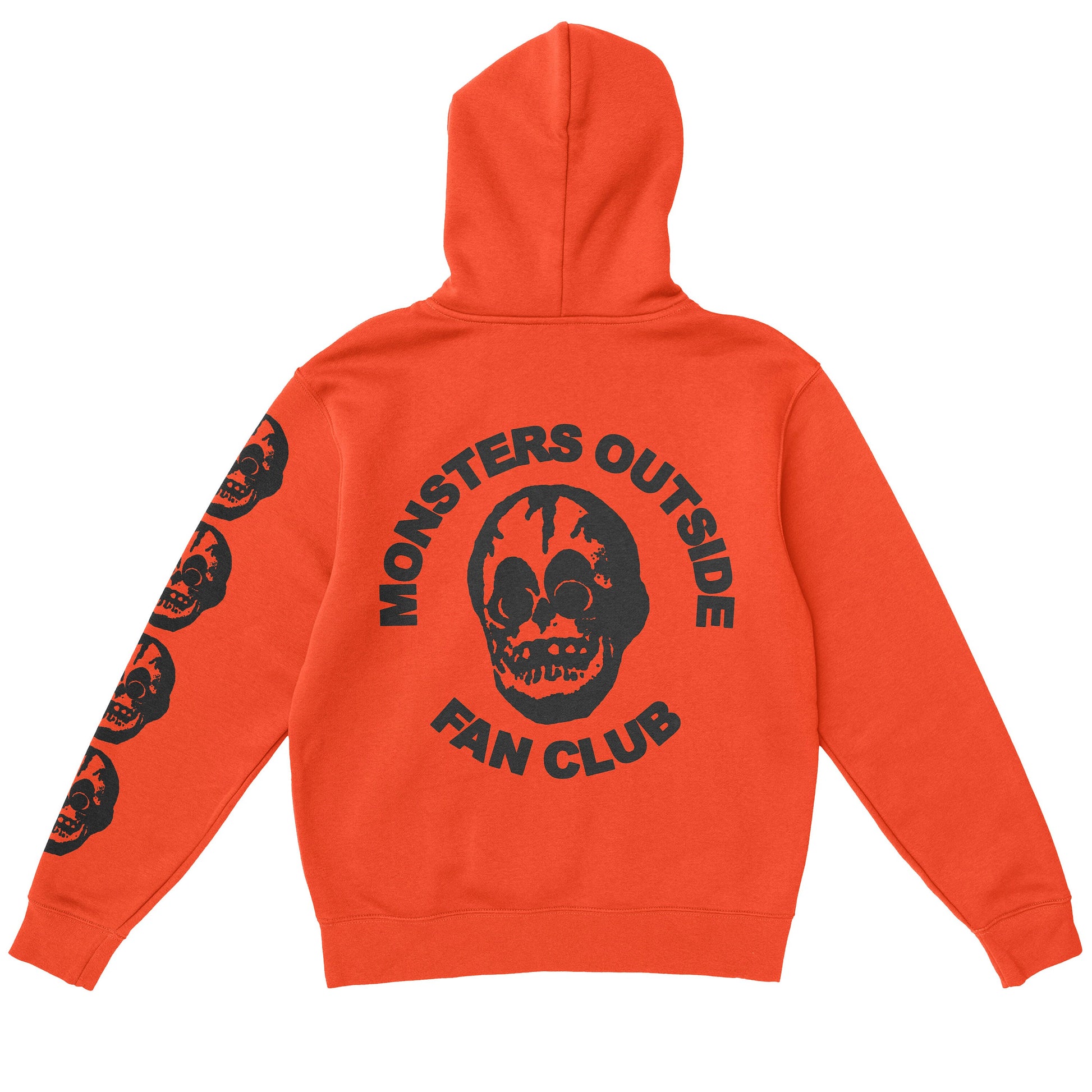 Black print on an orange cotton blend hoodie.