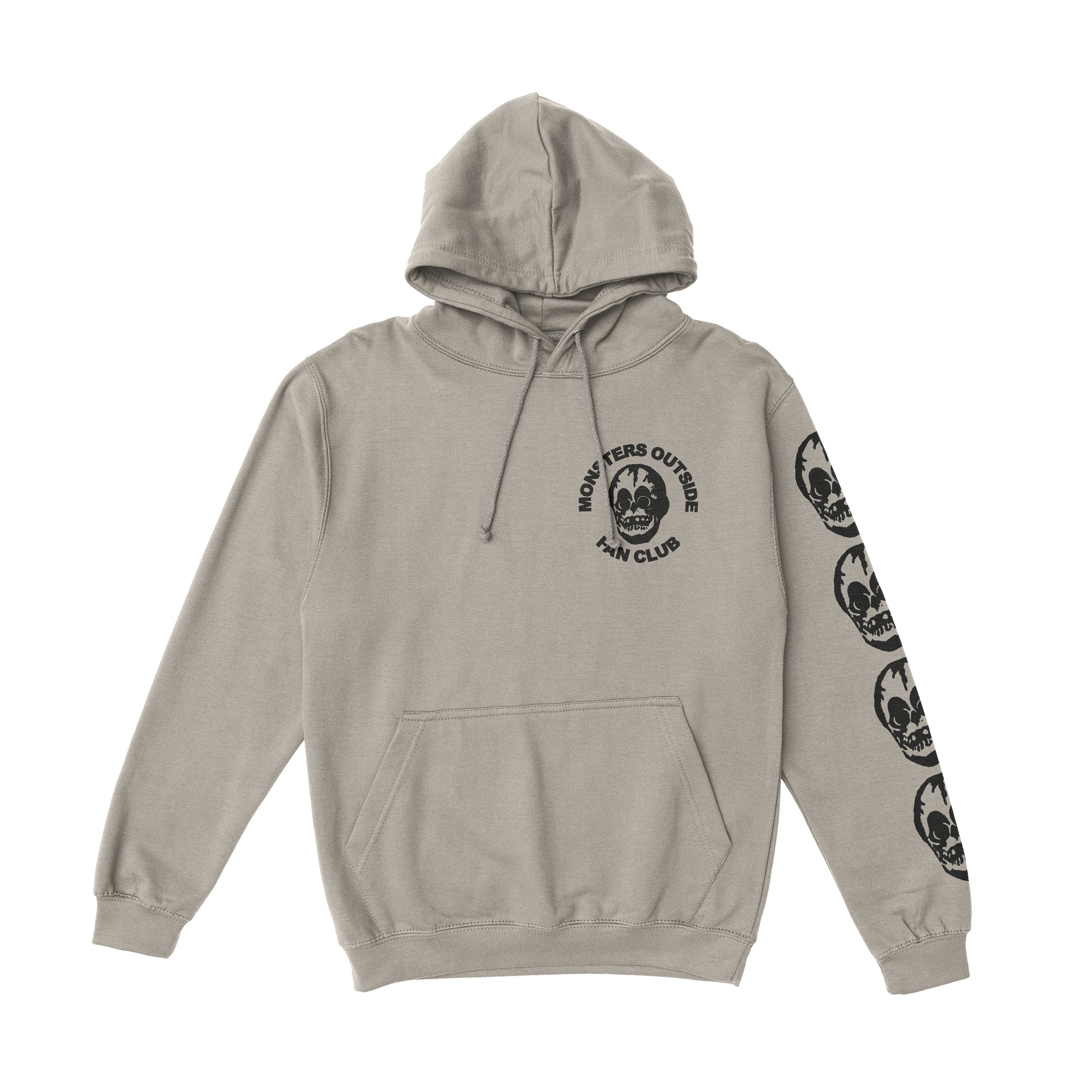 Black print on a cement color IND4000 heavyweight cotton blend hoodie.