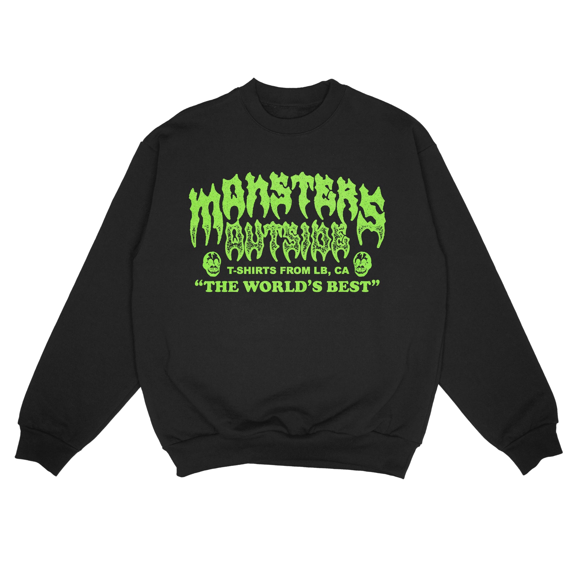 Bright grey print on a black Gildan heavy cotton blend crewneck.