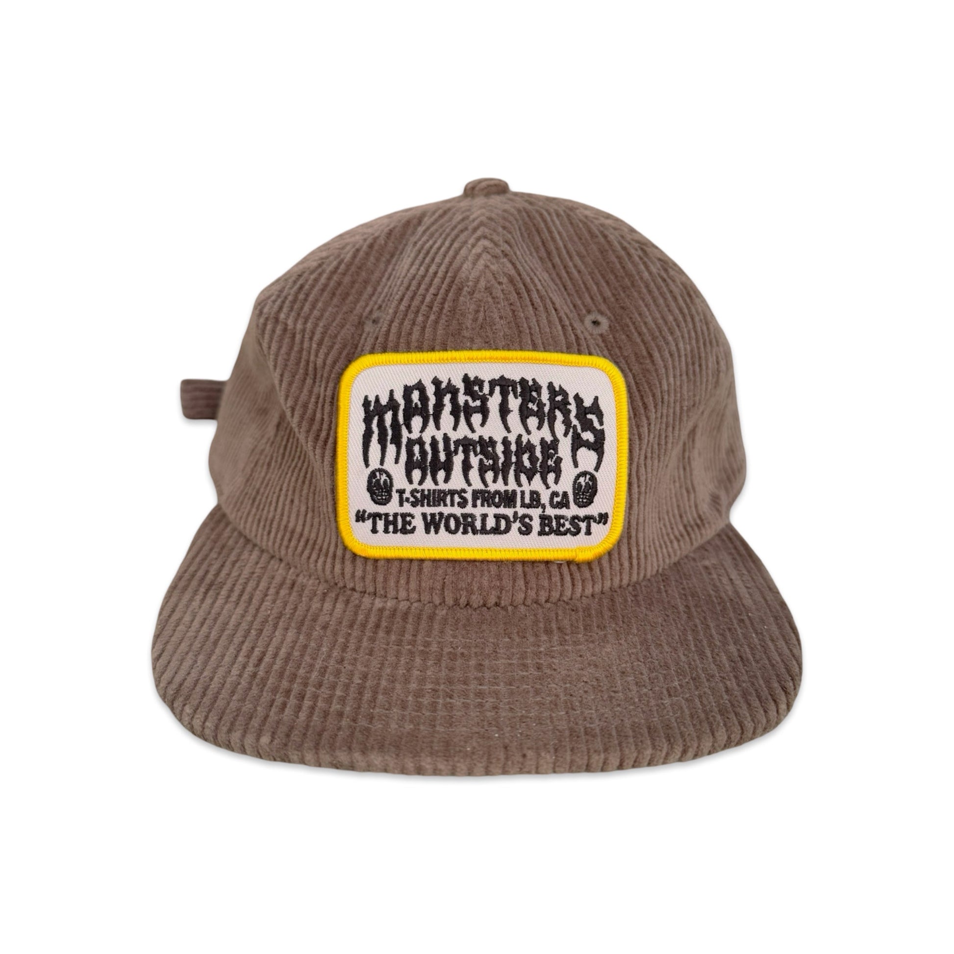 Embroidered patch sewn on a AS COLOUR corduroy class cap with strapback.